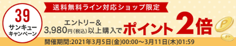 買い物期間: 2021年3月4日(木)20:00~11日(木)1:59