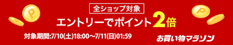 ショップ全商品ポイント10倍以上、エントリーで100円以上の商品を3点以上購入でポイント+9倍です。